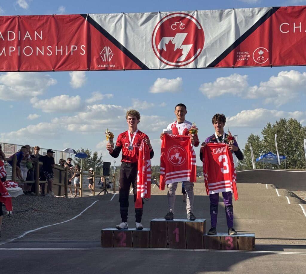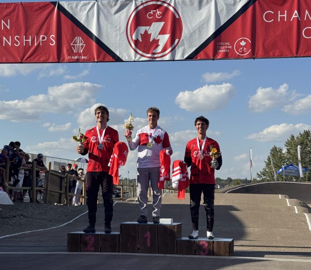 Team Ontario, led by Provincial Coach Britney Hovencamp and Assistant Coach Josh Samells, travelled to St. Albert, AB to for the 2025 Canadian BMX Championships. Ontario athletes raced hard with a number of them qualifying for the mains and a chance at national titles. In the U23 Men’s race Jakob Kaiser (2nd) and Ryder Cormier (3rd) were able to take two podium positions while in the Junior Men’s race Zak Kaiser captured the silver medal.